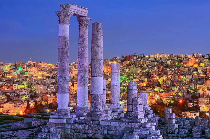 The capital city of Jordan, Amman, is a modern metropolitan city with rich history and culture and numerous ancient ruin sites.