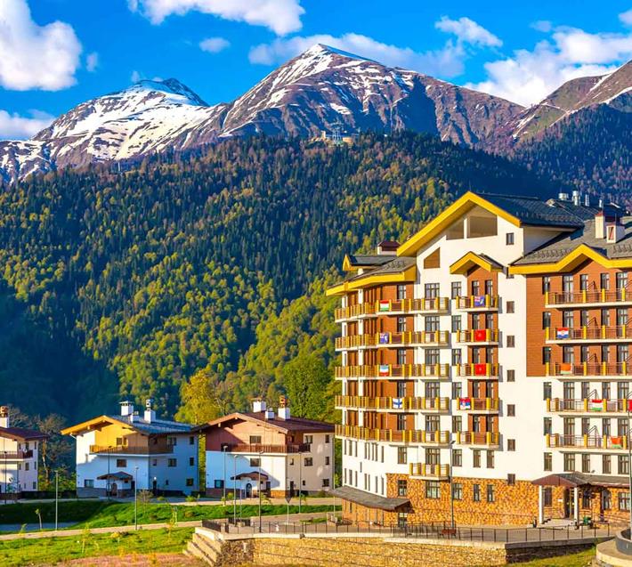 Walk around the streets of Krasnaya polyana surrounded by the picturesque Caucasus Mountains