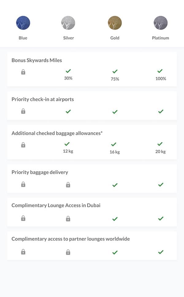 Emirates Skywards Gold benefits