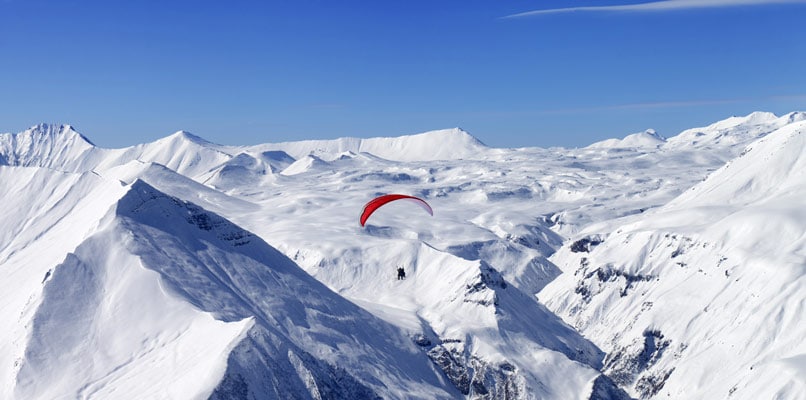 Между вершинами самых высоких гор в Европе расположился грузинский горнолыжный курорт Гудаури.